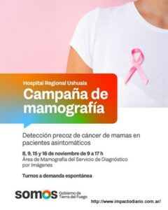 El Hospital Regional Ushuaia llevará adelante una campaña de mamografías gratuitas orientada a fortalecer las acciones de prevención y detección temprana del cáncer de mama.