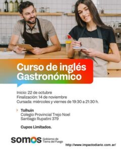 La propuesta es para un Curso Intensivo de Inglés Gastronómico en Tolhuin que tiene como objetivo fortalecer las capacidades locales, brindando herramientas comunicacionales para mejorar la atención al visitante extranjero y ampliar las oportunidades de empleo.
