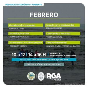 Por su parte, todos los jueves se llevará adelante el conversatorio “Conociendo la Antártida”, mientras que los viernes de febrero se realizará la actividad “Avistamiento de aves RNU Costa Norte”.