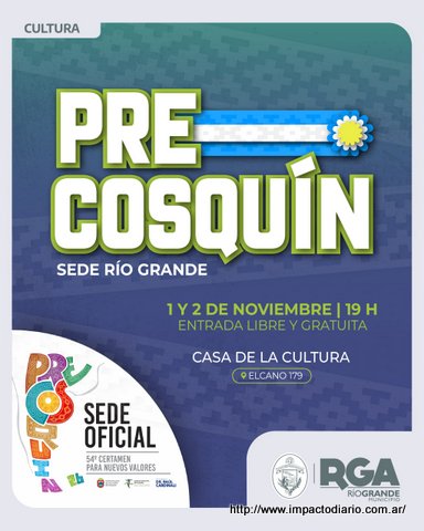 El Municipio de Río Grande invita a las familias de la ciudad a presenciar la 54° edición del Pre Cosquín 2026 que se desarrollará este sábado 1° y domingo 2 de noviembre, a partir de las 20 horas, en la emblemática Casa de la Cultura, la cual está ubicada en Elcano 179.