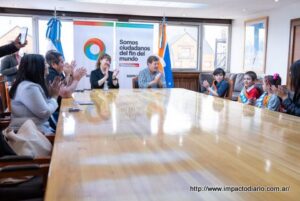 El Gobernador Gustavo Melella, junto al Ministro Jefe de Gabinete, Agustín Tita, compartió este martes una jornada de charlas y aprendizaje con alumnos y alumnas de 5º grado de la escuela provincial “Monseñor Fagnano”. La visita se dio en el marco del proyecto educativo “Construyendo Ciudadanía desde el Fin del Mundo” implementado por la institución.