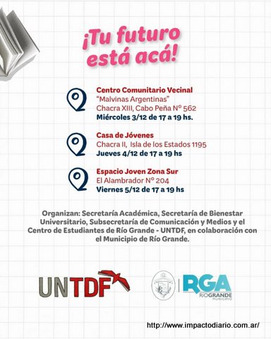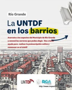 El Municipio de Río Grande y la Universidad Nacional de Tierra del Fuego (UNTDF) impulsan una nueva propuesta conjunta para acompañar a las juventudes y a toda la comunidad en el camino hacia la educación superior. A través de “La Uni en los barrios”, equipos de la UNTDF se trasladarán a distintos puntos de la ciudad para brindar información, asesoramiento y acompañamiento personalizado.