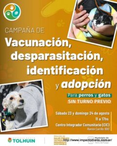Durante ambas jornadas, el equipo municipal brindará vacunación antirrábica, desparasitación y la identificación de los animales mediante microchip, una herramienta que contribuye a su registro y seguimiento. Además, se promoverá la adopción responsable de perros y gatos, fomentando la incorporación de animales a hogares comprometidos con su bienestar y cuidado.