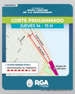 El jueves 14 de agosto se realizará en Río Grande la rampa simbólica del 50° Gran Premio de la Hermandad. Por este motivo, el Municipio informa las calles que estarán afectadas al tránsito durante el evento.