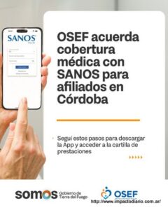 La Obra Social del Estado Fueguino (OSEF) informa que ha establecido un acuerdo con SANOS Salud para brindar cobertura médica a sus afiliados que se encuentren en la provincia de Córdoba. Este convenio tiene como objetivo garantizar el acceso a servicios de salud de calidad, respondiendo a las necesidades de los afiliados en un contexto de complejidad creciente.