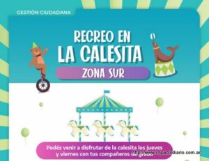 La Calesita de zona Sur está ubicada en Rafaela Ishton y Tolhuin, la cual estará disponible los lunes, martes y miércoles en los siguientes horarios: 10.30; 11; 14.30; 15 y 15.30 horas para que las niñas y niños de nivel primario e inicial se diviertan y disfruten de este espacio de encuentro y juegos.