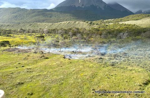 Luego del aviso del Controlador aéreo del aeropuerto Internacional Malvinas Argentinas y habiendo evaluado las alternativas para acceder al punto del ígneo, un helicóptero con personal de la Brigada Provincial de Ushuaia y Bomberos de Ushuaia se dirigieron con equipo de bombeo a combatir el mismo.