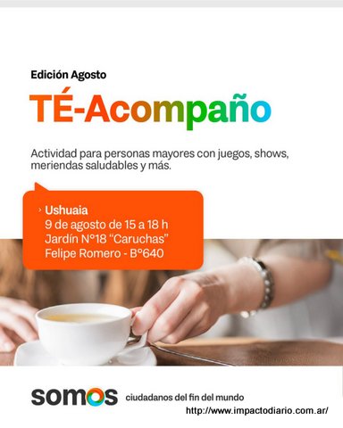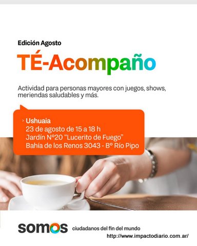 Durante el mes de agosto la ciudad de Ushuaia volverá a ser escenario de nuevas jornadas del programa Té Acompaño, una propuesta que sigue creciendo y consolidándose como espacio de encuentro, contención y disfrute para las personas mayores en los distintos barrios de la ciudad.